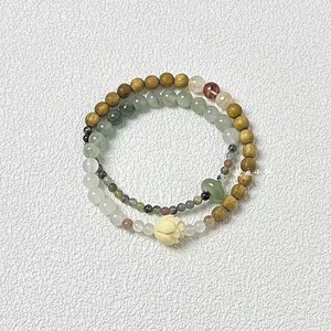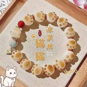 花の前で酔ったリトルライムキャットグリーンブレスレット、猫の爪ハンドヘルド高価値ブレスレット、女性の手が指に巻き付けるソフトブレスレット