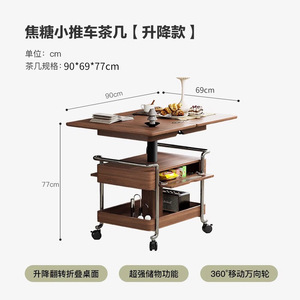 中古风升降茶几边几角几多功能小推桌可折叠可移动客厅家用小推车