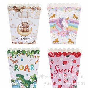 现货派对爆米花盒恐龙动物草莓小熊零食薯条包装盒食品收纳派对盒