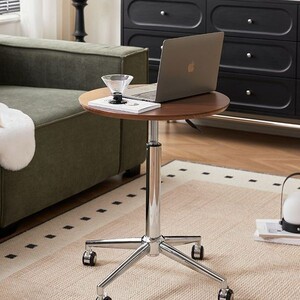 中世スタイル北欧可動サイドテーブルソファサイドテーブル昇降可能な小さなラウンドテーブルベッドサイド無垢材昇降小さなコーヒーテーブル