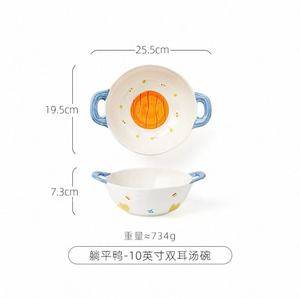 かわいいセラミック下絵色食器セット、かわいい学生寮ホームライスボウル、スープボウル、ボウル、プレート、スプーンの組み合わせ