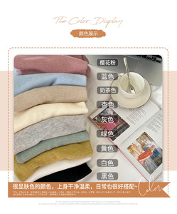 针织打底衫女秋冬洋气内搭木耳边半高领毛衣修身百搭中领长袖上衣
