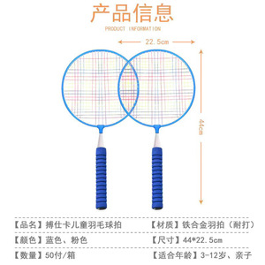 ブルーとピンクの子供用バドミントンラケット(ボール3個+ラケットバッグ)