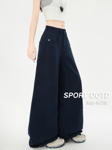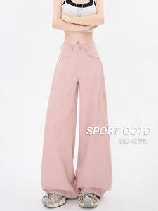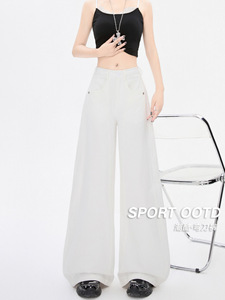 春夏の薄いデニムシミターパンツ女性の新しいルーズアメリカンハイストリートスリムスポーツカジュアルハイウエストストレートパンツ