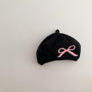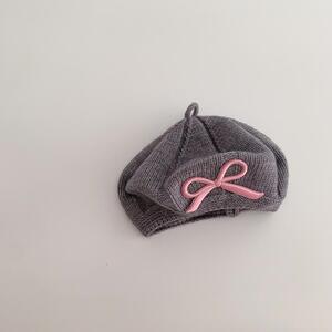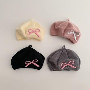 女童贝雷帽秋冬款甜美刺绣蝴蝶结保暖防风毛线帽女宝宝针织画家帽
