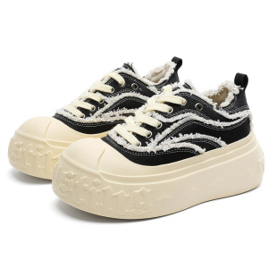 ニッチデザインのプラットフォーム厚底デニムキャンバスシューズ、多用途カジュアル身長を伸ばすパンシューズ、カップル用の大きなつま先のスニーカー