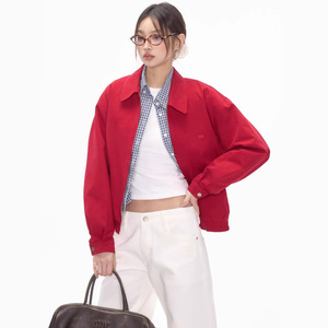 2025红色哈灵顿夹克美式复古春季基础通勤男女百搭短宽松外套上衣