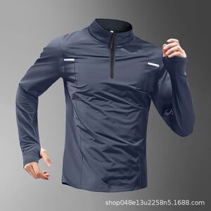 速乾性長袖メンズハーフジッパートレーニングウェアランニングスポーツトップサッカーフィットネスサイクリングウェアスタンドカラーティーシャツ