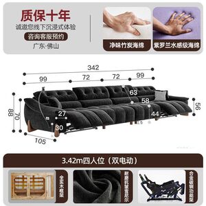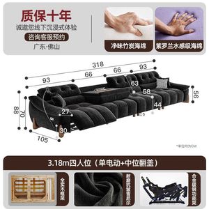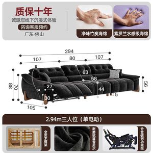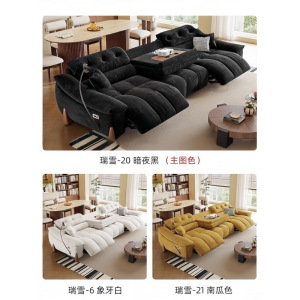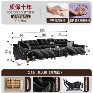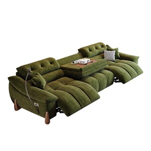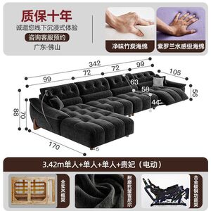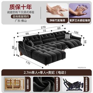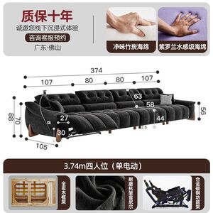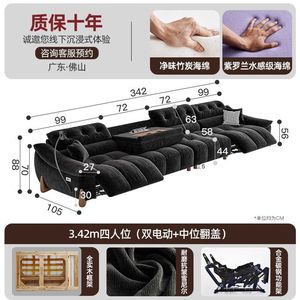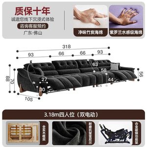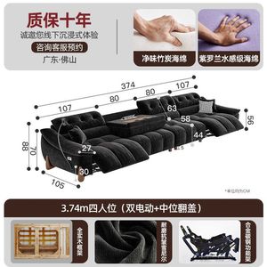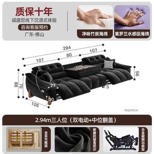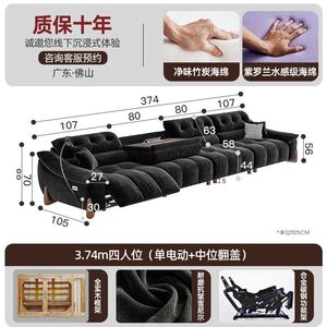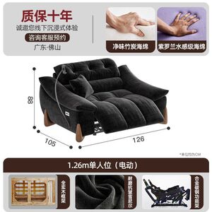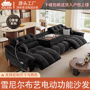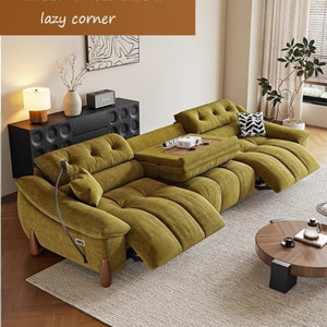 電動でサイズ調整可能なクリームシェニール多機能ソファ、レトロなゼロウォールフランネルソファ