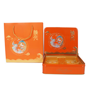 中秋の月餅ブリキ箱 4 個パッケージホリデーギフト包装正方形ブリキのお祝いギフトボックスメーカー在庫