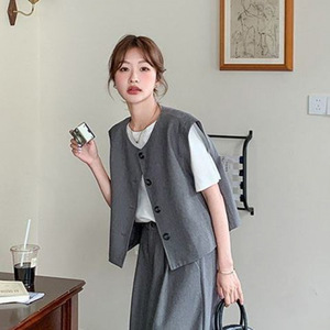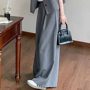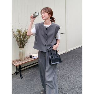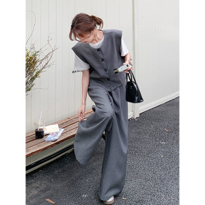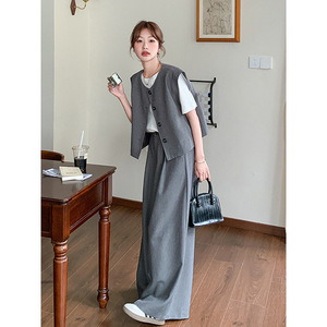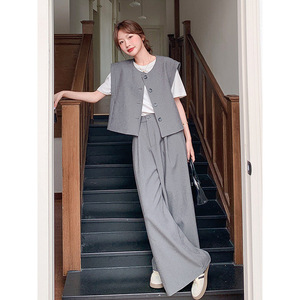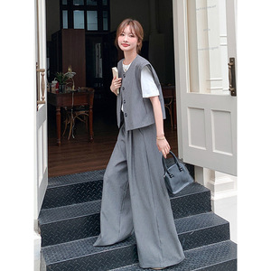 2025年新作夏グレーベストワイドレッグパンツスーツ、軽くて大人っぽい、高級感と気質、スリムな2点セット