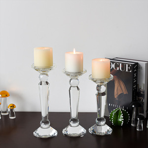 现货欧式简约水晶玻璃烛台透明浪漫婚庆婚礼道具餐桌装饰摆件烛台
