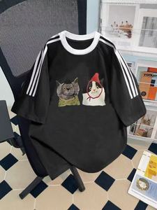 厚手の純綿白スリーストライプス半袖Tシャツレディース2025年夏新作オーバーサイズルーズインナートップ