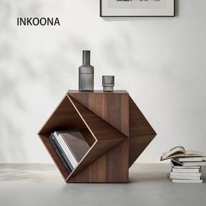 イタリアのミニマリスト多面体コーナーテーブル北米ブラックウォールナットアートソファサイドテーブル無垢材シンプルなモバイルコーヒーテーブル