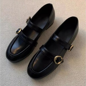 フレンチニッチレトロラウンドトゥバックルフラットシューズ女性用2025新しい英国スタイルの快適なメリージェーンシューズ