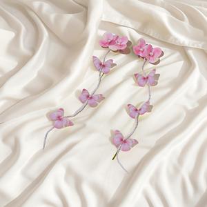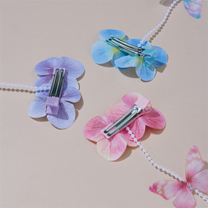 薄荷漫波兰花蝴蝶编发发夹女童甜美流苏发绳发卡公主头饰夏日风