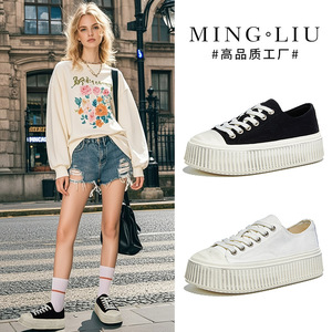 新しいキャンバスシューズ 2025 秋レトロ色ビスケットシューズカジュアル白靴女性の厚底スニーカーファッション女性の靴