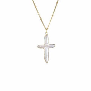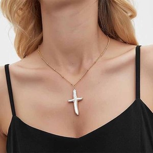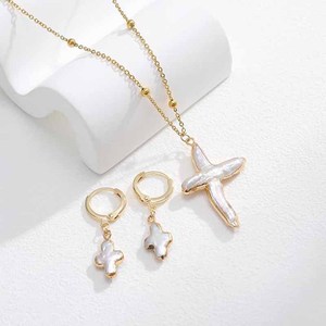 ヨーロッパとアメリカの国境を越えた新しいファッションシンプルな淡水パールクロスネックレス厚い大きなクロスパールイヤリング