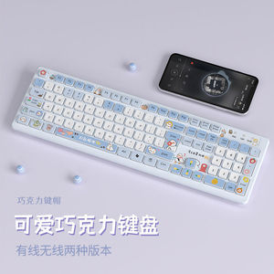 打起精神鸭彩绘键盘可爱女生有线/无线/蓝牙通用卡通原创办公键盘