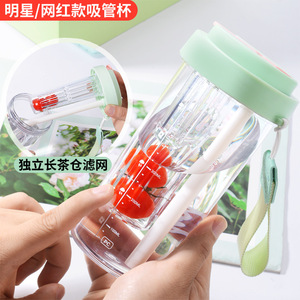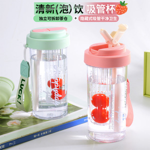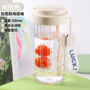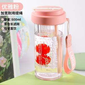 女の子用の透明なポータブルプラスチックカップ、アウトドアスポーツストローカップ、シンプルな高温耐性のティーセパレーター付きフラワーティーカップ