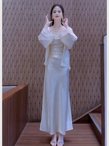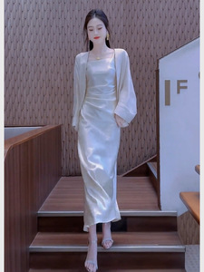 2025年、美しいアセテートサスペンダードレスとブラウス、高級感のある女性の夏の重要な機会に最適な美しいスカート