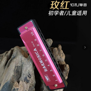 10穴チタンメタルハーモニカ-ローズレッド