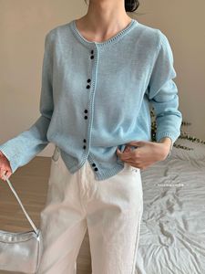 シンプルなスタイルのラウンドネックシングルブレストニットカーディガン女性のための 2025 初秋の新しいスタイルの小さなトップルーズスリムセーター