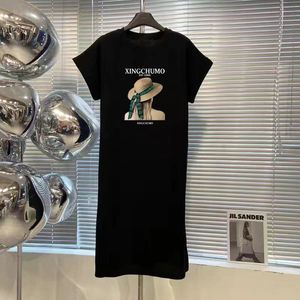 韓国版の女性用大きいサイズのゆったりTシャツナイトガウン、夏用ゆったりで肉感をカバーして着痩せ、カジュアルなロングワンピースとして着用可能