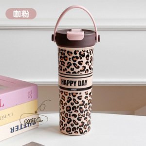 ins风复古双饮提手杯外出便携不锈钢吸管杯创意方格学生保温水杯