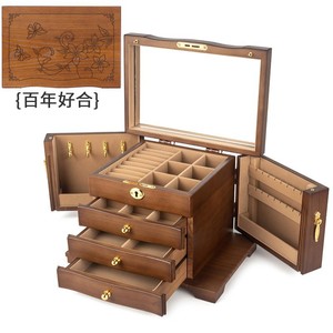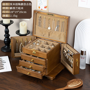 ロック付き無垢材ジュエリーボックスジュエリーネックレスゴールドジュエリー収納ボックスレトロハイエンド絶妙な大容量ギフト