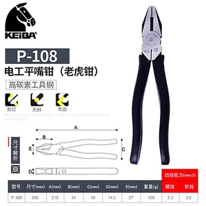 オリジナル日本コンチネンタルワイヤーペンチ P108 輸入工業用電気技師バイス平ペンチ 6/7/ 8inchKEIBA