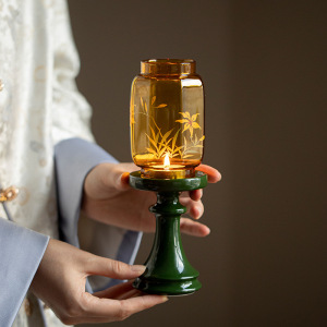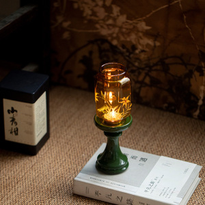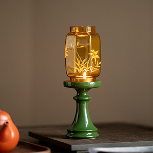墨己瑞璃祖母绿兰花烛台茶道配件茶席氛围感高颜值摆件香薰蜡烛台