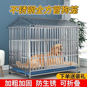 不锈钢折叠狗笼中型犬狗笼子带厕所方管室内边牧宠物金毛中大型犬