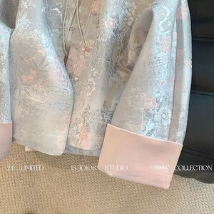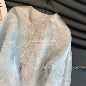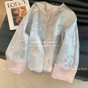 国风新中式袖口撞色改良提花外套女早春新款盘扣显瘦唐装上衣气质