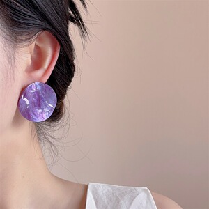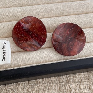 フレンチレトロデザインキャンディーカラーツイストラウンドアセテートイヤリング女性のための夏の新しいニッチホリデースタイルイヤリング