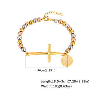レディースファッションハンドジュエリーステンレススチールクロスカーブオーバルブレスレット3色ビーズブレスレットゴールド