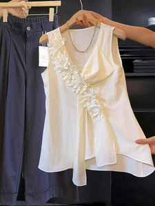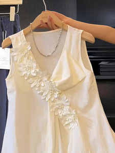 フランスのエレガントでロマンチックな立体花ノースリーブベストシャツ女性の夏の美しいシャツデザイン気質トップ
