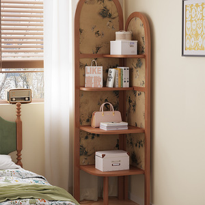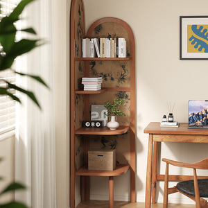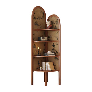リビングルームの本棚レトロな床から天井までの収納ラックコーナー三角キャビネット多層ディスプレイラックアンティークスタイルのコーナー収納サイドキャビネット