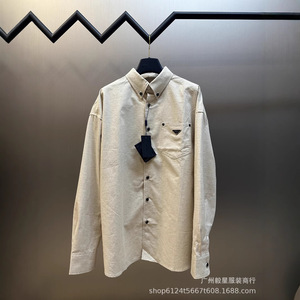 高バージョン P ファミリー無地単列ロゴ長袖シャツカジュアルルーズリネンコットンシャツ男性と女性用