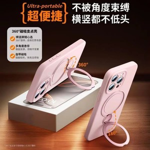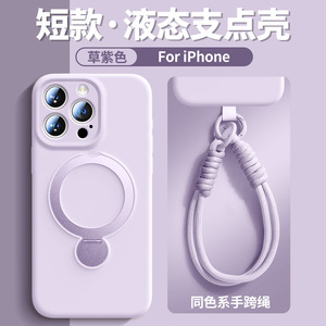 iPhone16に適した新しい回転磁気ホルダー、ストラップ付きの細かい穴の液体シリコン携帯電話ケース、Apple 13保護ケース