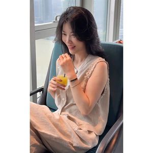 デザインされた高級ノースリーブカーディガントップ夏の新しいハイウエスト痩身年齢軽減カジュアルパンツ女性用ルーズツーピースセット
