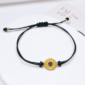 国境を越えた売れ筋ひまわり友情ブレスレット手織りワックス糸調節可能なデイジーブレスレット工場直販