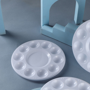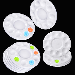 学生アート用の丸い10穴パレット、ガッシュ水彩マルチグリッドパレット、お手入れが簡単な特別なパレット