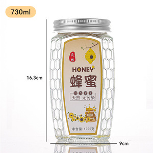 卸売新しいガラスハニカム蜂蜜ボトル八角形六角形ビッグベリー 0.5kg パック 1.0kg パック肥厚ガラスボトル