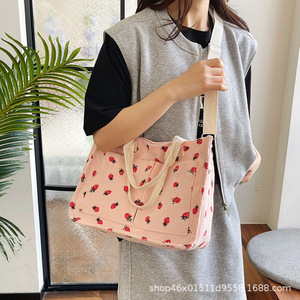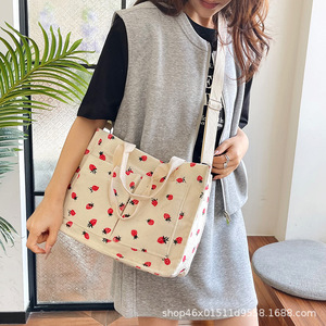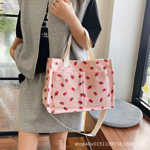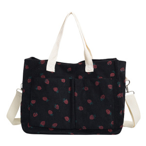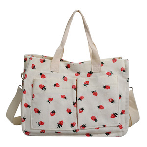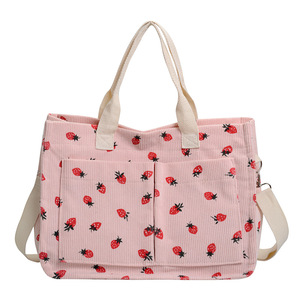 Shangshen クロスボーダーホットスタイルコーデュロイ布ポータブル大型バッグ女性のための 2025 春夏新作イチゴ軽量大容量ライト