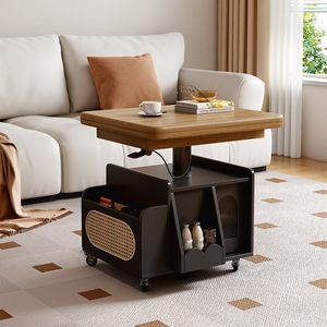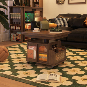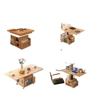 リフティングコーヒーテーブル折りたたみモバイルカート無垢材ティーテーブルティーテーブル小さなアパートのリビングルーム多機能ソファダイニングテーブル兼用