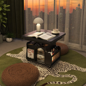 【ブラック+ウォールナット】取り外し・昇降・折りたたみ可能なコーヒーテーブル