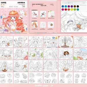 クロスボーダー子供用水彩ぬりえ絵本固形ぬりえ絵本には顔料が付属しています落書き手描きDIY絵画ぬりえ