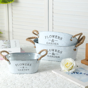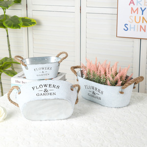 国境を越えた熱い販売楕円形の鉄の植木鉢牧歌的な多肉植物の鉄の植木鉢レトロな白いバルコニー鉢植え