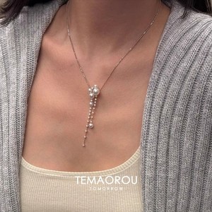 女性用フレンチクールパールとダイヤモンドのロングタッセルネックレス、軽い高級感、マイクロセットのジルコン鎖骨チェーンアクセサリー